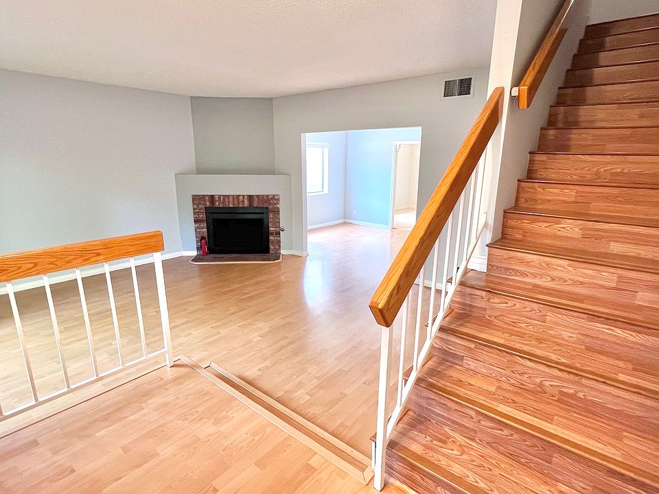 Welcome to this freshly painted, move-in ready townhouse featuring 3 bedrooms and 3 bathrooms across three levels of spacious, comfortable living. The main floor includes a living room with fireplace and balcony, a versatile bonus room, a guest bathroom, and an updated kitchen with plenty of cabinetry, modern finishes, and a large dining areaperfect for everyday meals or entertaining. Upstairs, two of the three bedrooms offer vaulted ceilings and generous closet space, accompanied by two full bathrooms. The lowest floor features a two-car garage, laundry with washer and dryer, and an additional bonus room for flexible use. Situated at the back of the community for maximum privacy, the home is surrounded by greenery and adjacent to a beautifully landscaped park with a picnic area, creating a serene, retreat-like feel. Residents enjoy a nearby community pool (heated year-round), spa, and sauna. Conveniently located near shopping, dining, and transportation, this home offers low-maintenance, easy-living at its best. Don't wait to schedule your tour and move in today!