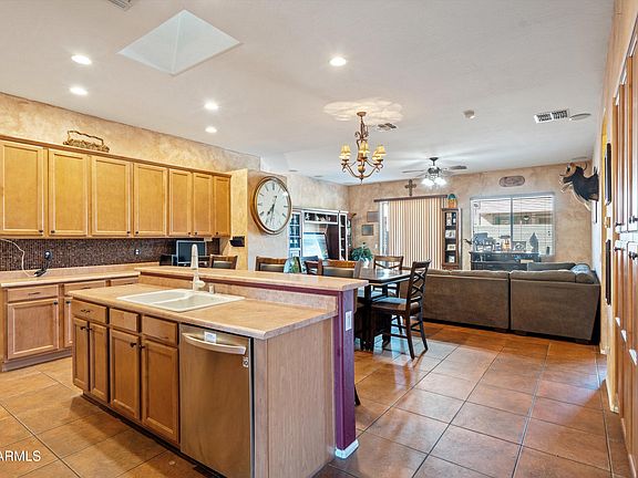 Beautifully maintained 3-bedroom, 2-bath home on a desirable corner lot with a resort-style backyard and RV gate. Inside, a welcoming family room and dedicated office lead to an open kitchen overlooking the living and dining areas. The split floor plan offers a spacious primary suite featuring dual sinks, separate tub and shower, large walk-in closet, and private toilet room. The kitchen includes a breakfast bar, island, ample cabinetry, and stainless steel appliances. Guest bedrooms are generously sized, with one featuring a walk-in closet. Enjoy outdoor living with a 7-foot play pool and covered patio. Complete with a 2-car garage, this home combines comfort, functionality, and style in one inviting package.