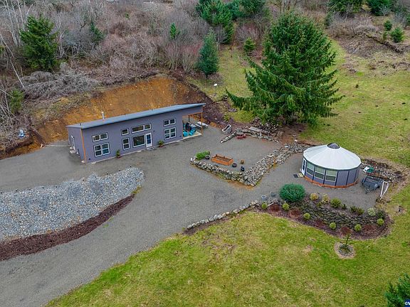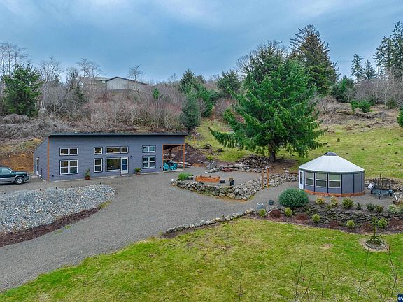 Modern coastal range home on 4.5 acres with bonus round guest house. Main house is 2 bed,2 bath, open kitchen, gas range, large granite island, walk-in primary shower, hot tub, covered outdoor kitchen area perfect for entertaining! Fire pit, beautifully lit hardscaping. All appliances and basic furniture included!