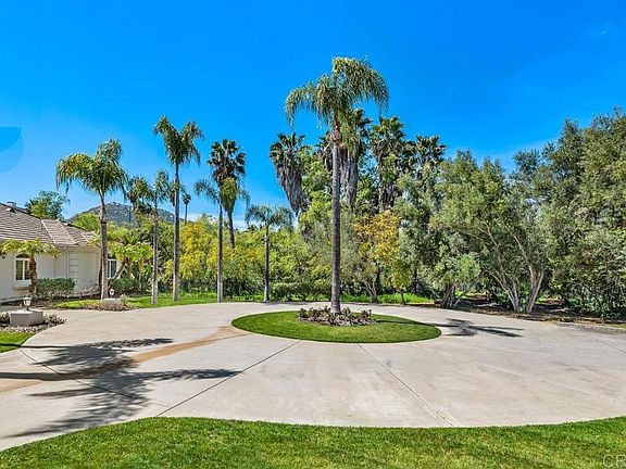 SINGLE STORY, OWNED SOLAR. Private, serene location tucked into the coveted Huntington Gate enclave of custom homes on 1 acre of flat usable land. Upon entering the light and bright formal living room, one is drawn to the large glass retractable doors which open to the expansive, south-facing back yard offering lush, mature landscaping, fruit trees, and room to build a pool, sport court, or additional structures.  RV parking, fruit-bearing trees, garden shed, 3 car garage and grand circular driveway make this a truly special property. Featuring granite counters, high-end appliances, and cherry wood cabinetry, the gourmet kitchen opens to the breakfast nook and the spacious family room with fireplace. Luxurious and private primary suite with cozy sitting area and doors to the rear patio and yard. This comfortable home offers many designer features including custom bar and Versailles pattern tile floors in the Excellent Poway School District. 3D MATTERPORT TOUR IS UNBRANDED VIRTUAL TOUR.