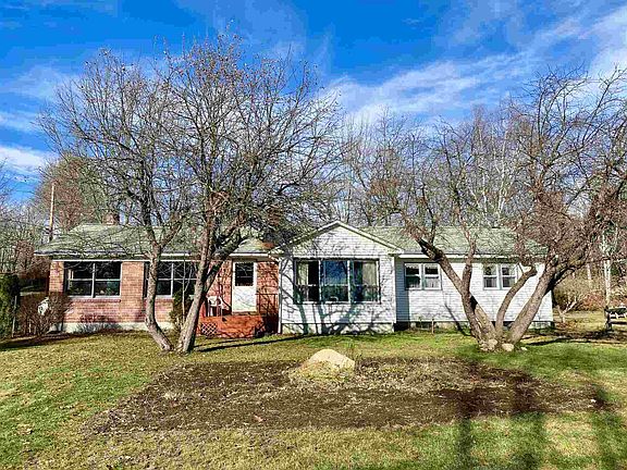 Meticulously kept, this spacious 3 bedroom, 1 full bath, ranch is sited on 6 acres of pasture, bordered by an old stone wall. Open kitchen/dining area features a gorgeous soap stone wood stove and and ample cabinetry that's in excellent condition. Off the kitchen there's a 4 season sunroom with a wall of windows that offers a great view of Canaan Mountain and a seasonal view of other local mountains! A brick fireplace is the focal point of the spacious living room. Easy to maintain hardwood floors flow throughout the living room, den, halls and all 3 bedrooms. There are generous closets in nearly every room. The full basement has a fieldstone fireplace on a separate flue. There is plenty of dry space if you want to expand your living space! A two-story, two-car garage with an attached wood shed offers lots of storage space and room for a workshop. A second woodshed holds 3+ cords of seasoned hardwood. This lovely property boasts strawberry gardens, raspberry and blueberry bushes, apple trees, many perennials and mature shrubs.