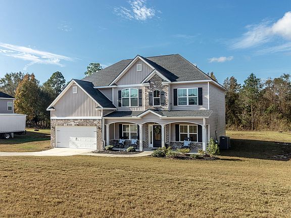 Three additional guest rooms and a full bath with double vanities complete the upper level. Outdoors, enjoy a rocking-chair front porch and a covered back porch, ideal for relaxing and enjoying the serene, large lot with a sprinkler system. Feel secure, as the alarm system remains with the home.