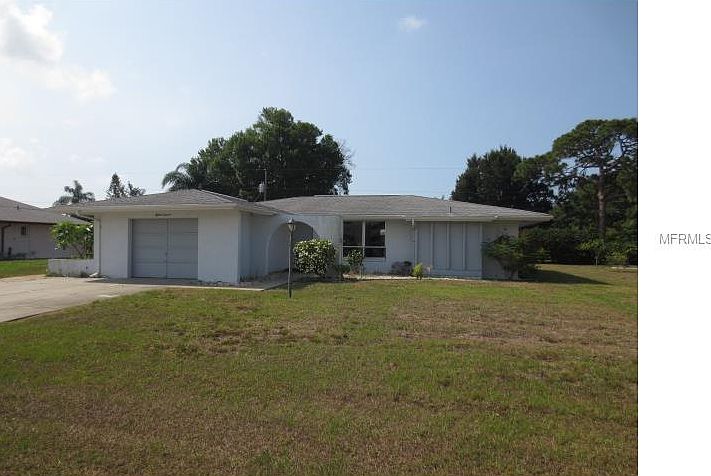 Clean and well maintained Ruth Richmond built 2BD/2BA/1CG Pool home in Overbrook Gardens. Split plan bedroom and bathroom design offers plenty of privacy for both owner and guests! Newer carpet throughout the main living area, including the master bedroom, as well as newer interior paint. Popular L-shaped living and dining rooms offer plenty of entertaining area, as well as a ceiling fan and sliding glass doors to the lanai. Ample sized Master bedroom also features sliding glass doors to the lanai, walk-in closet, and ceiling fan. Master bath offers a shower with door for ease of getting in and out. Guest bedroom is carpeted, has sliding glass doors to the lanai, wall closet, and ceiling fan, and guest bath has a combination tub/shower. The kitchen has a small breakfast nook area overlooking the lanai and pool, with a door opening directly onto the pool area. The refrigerator is newer, and there is tile flooring and tiled countertops, plus plenty of cabinetry. One car garage with washer/dryer hookups and additional built in storage. The fiberglass pool is oversized, and most of the screening on the mansard style pool cage has been replaced. AC system was changed out in 2012 with a high efficiency 2.5 ton 14 seer system with a heat pump. Roof was replaced in 2000. Central water/sewer. Community boat ramp with access to Lemon Bay and the Gulf is available just around the corner!