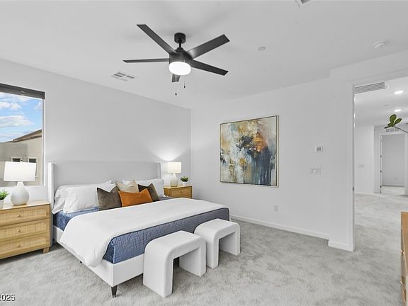 Welcome to luxury living in one of the newest Summerlin neighborfoods! This immaculate, brand-new 4-bedroom, 3-bath home offers modern comfort and style with breathtaking mountain views. Thoughtfully designed and fully furnished with high-end finishes and designer touches throughout, this turnkey rental is move-in ready. Features include: Spacious open-concept living area with abundant natural light. Galley kitchen with large island, stainless steel appliances and quartz countertops. Primary suite with mountain facing balcony features an upgraded walk-in shower, double sink vanity and walk-in closet. 2-car garage, in-unit laundry, soft-water system and many more amenities await you. Whether you're relocating, in transition, or simply looking for an elevated lifestyle experience, this home offers the perfect blend of comfort and convenience in one of Las Vegas' most sought-after communities.