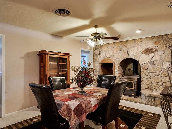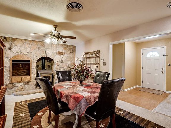 Spacious 4 bedroom, 2 bath home, 2-car carport home in Iowa Park. Formal dining room has fireplace. Two living areas. Kitchen has breakfast/serving bars, built-in microwave, dishwasher, and free-standing electric range/oven. Secluded master suite has bath with shower. Secondary bedrooms share a hall bath with shower/tub combination. Backyard has "log cabin" storage building/workshop and RV carport. 2-car garage is currently used as a second living but could easily be converted back to a garage