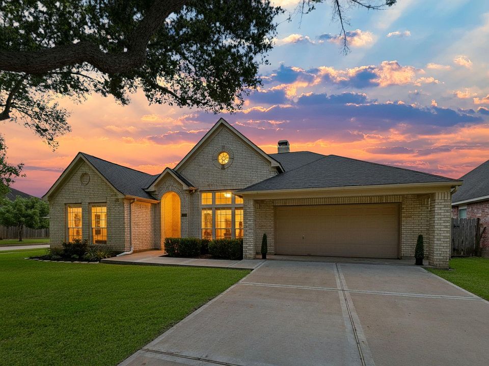 This Perry corner-lot home in Waterside Estates offers 4 spacious bedrooms, 3 baths, and a 3-car tandem garage with workbench. A new roof (2025) and ALL-BRICK exterior add durability and curb appeal. Inside, high ceilings throughout create an open, airy feel. The layout includes a formal dining, formal living, and a family room with fireplace and arches that set a warm, inviting tone. The kitchen features extensive cabinetry, a walk-in pantry, and a breakfast bar, ideal for daily living and entertaining. The primary suite offers coffered ceilings, dual vanities, tub, a separate shower, and a big walk-in closet. Two water heaters (2021), driveway and walkway (2023) add efficiency. Step outside to a backyard designed for gatherings or relaxing. Community amenities include walking trails around the lake, tennis courts, and a pool with splash pad. Conveniently located near top-rated schools, shopping, dining, and entertainment, this home blends comfort, style, and functionality.