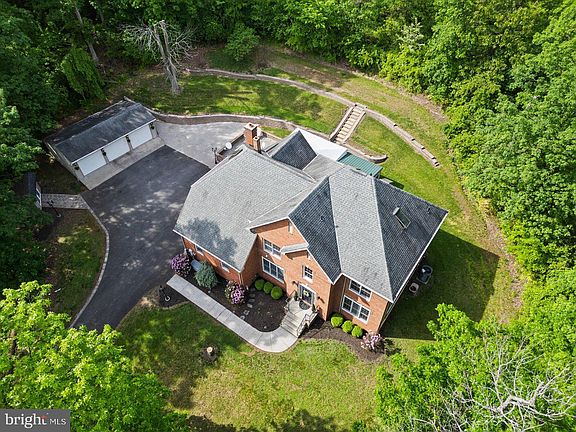 Tucked behind a long, private drive and nestled on over 3 serene acres, this remarkable English country estate is a hidden jewel in Montgomery County! Built in 1999 by the original owner and his brother, the home is a true testament to craftsmanship, heritage, and timeless design, where every brick, beam, and detail was thoughtfully chosen and masterfully executed. The stately all 100% brick exterior, complete with ginger masonry and wrought iron accents, sets the tone for what lies within. Step into the grand two-story foyer where 18-foot vaulted ceilings and radiant heated hardwood floors create a warm and welcoming sense of scale. Natural light floods the home through large custom windows, enhancing the flow between formal living and dining spaces and the inviting, open-concept family areas. The chef’s kitchen is both refined and functional! Featuring granite countertops, a JennAir downdraft cooktop, wall oven, soft-close cabinetry, under-cabinet lighting, a walk-in pantry with pull-out shelving and a charming extra pantry. A sun-drenched breakfast room leads into the spacious family room anchored by a propane gas fireplace, while the adjacent sunroom with its 12-foot sliding doors and hardwood floors—offers tranquil views of the surrounding landscape and access to a small private patio. The home offers five bedrooms and five full bathrooms, including a luxurious primary suite with four oversized windows, a custom walk-in closet, a spacious vanity area, a walk in tile shower, and a separate toilet room. The second floor also features a dedicated laundry room and generously sized guest suites, each with their own walk in closets and private or Jack and Jill baths. A stunning third floor library with skylights leads to an expansive fifth bedroom and full bath, offering additional space for guests, creative work, or a quiet retreat. Notable features include solid wood doors throughout, Baldwin brass hardware, two staircases, intricate wood trim, and radiant heat flooring across the main living areas. The attached two-car garage is heated and outfitted with built-in storage, a refrigerator and freezer. A detached three car heated garage with its own propane tank offers endless versatility, complete with an automatic watering system for potted plants! Outside, the property includes a potting shed, a charming fountain, and mature landscaping that includes fig trees and bird-friendly gardens! A unique and thoughtfully designed “tent room,” built by Anchor Industries, offers fully conditioned space with heat, air conditioning, electricity and charming lighting perfect for year round entertaining or a peaceful escape! Additional highlights include a propane-powered generator that services approximately 80% of the home, oil radiant heating with seven zones, a water softener system and architectural 40-year shingles with approximately 20 years of life remaining. Completely private yet remarkably close to everything, this one owner property offers the perfect balance of elegance, comfort, and enduring craftsmanship. Homes of this caliber and with this kind of story rarely come to market! Don't miss out on your chance to own this one of a kind gem. Schedule your private tour today!