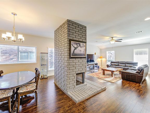 Tucked into a quiet, established neighborhood, this charming one story home blends character with comfort. From the moment you step inside, the open living room draws you in with its unique central fireplace, a rare design element that creates warmth and connection at the heart of the home. The thoughtful layout flows easily into the dining area and kitchen, making it perfect for both everyday living and entertaining.