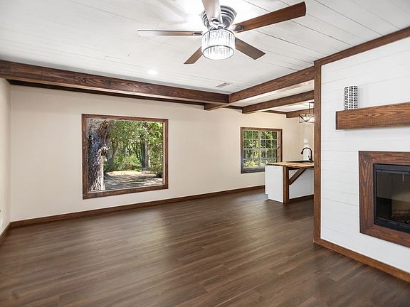 STUNNING, FULLY REMODELED, MODERN FARMHOUSE ON .98 ACRE IN A GREAT LOCATION in town! Don't miss this beautifully crafted home with timeless style and modern finishes galore! From the minute you enter this beauty, the beautiful ceiling beams, gorgeous lighting and designer touches will have you ready to make it yours. With modern butcher block counters and new appliances, this completely new kitchen will have you ready to sit around the huge island for family time. A large pantry, utility room and flex room add to the 3 bedrooms and 2 bathrooms with completely new designer touches. The open front porch looking over mature trees and a deck in back off the master bedroom, add to the fabulous features of this home. With a new metal roof and designer paint, this home will be in style for years to come. With almost 1 acre (.98), the lot is cleared and ready for anything but has privacy with mature foliage. The property has a large barn for all your storage needs. This one won't last long!