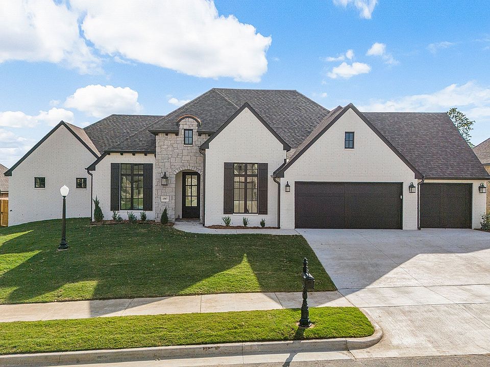 TRANSITIONAL STYLE - SCHULTZ FRONT PLAN: 4/3.5/3 + Study; 1 Bed, Full Bath & Game Room Up. Loaded with premium finishes, including wood floors, granite, custom-built cabinets, stone fireplace, spray-foam insulation, 16 SEER AC, 95% efficient furnace, A-frame patio, & more!