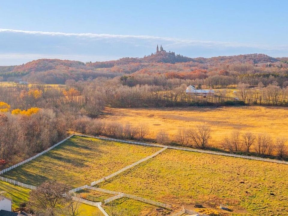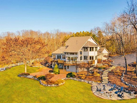 Stunning 57 acre property with incredible views of Holy Hill, surrounded by nature: hike, farm , hunt, raise animals, bring your horses, garden to your heart's content and enjoy the tranquil beauty of Erin. This is the lifestyle and the setting that await you at this beautiful 4-5 bedroom, 4300+ square foot home with room for family and friends! Walls of windows for loads of natural light and western views! Many recent updates include a brand new SubZero refrigerator, and a new whole-house generator. The property includes two separate tax keys, and the Flynn Creek flows through it. The barn is currently home to a flock of chickens and prized cattle and there are 5 separate fenced paddocks, with room for an outdoor riding arena. If you have ever wanted a small farm, this is your chance!