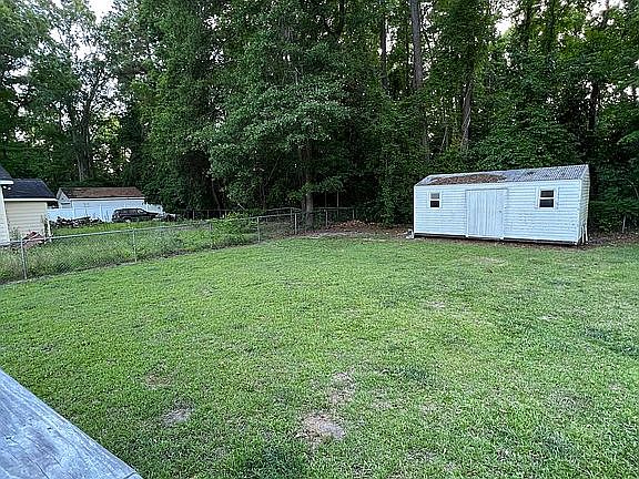 Cute house on a quiet street off of 2nd Loop. Master bedroom and bath is on one side of the house while 2 spare bedrooms and an additional full bath is on the other. Hardwood floors in all rooms but bathrooms and kitchen. Freshly painted in 2020 with gutters cleaned in the spring of 2022. Small deck off of the back with a large fenced in yard with storage building. All appliances are working and will come with the house.