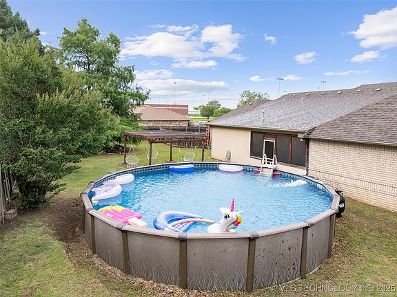 New pool pumpAbove ground poolOpen floor planDining roomBrick residenceExpansive backyardSpacious laundry room