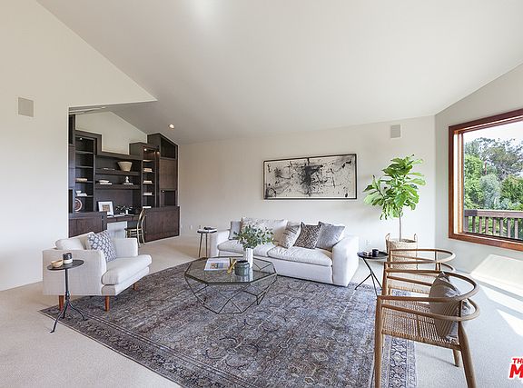 Modern Living ; Gorgeous Views - 5 bedroom estate-style home south of the Blvd with 180 degree city light & mountain views. 4 bedrooms in the main home and attached guest unit with full bath and separate entrance, perfect for home office or gym / studio. Bathed in sunlight, Encanto features vaulted ceilings, hardwood floors, updated kitchen with stainless appliances & Viking range, surround sound, custom fireplace & built-ins, and direct entry finished two car garage. One bedroom with full bath on main floor. The spacious master suite has a romantic feel with remote-controlled fireplace, private outdoor balcony with views, large walk-in closet, and ensuite bath with jacuzzi tub. The private backyard beckons with a large cabana for lounging and entertaining, built-in seating around a firepit, and calming waterfall. Smart Home with Nest thermostats for two HVAC systems, front door video camera, and fire & security alarm system. Turnkey, nestled in nature, close to Westside.