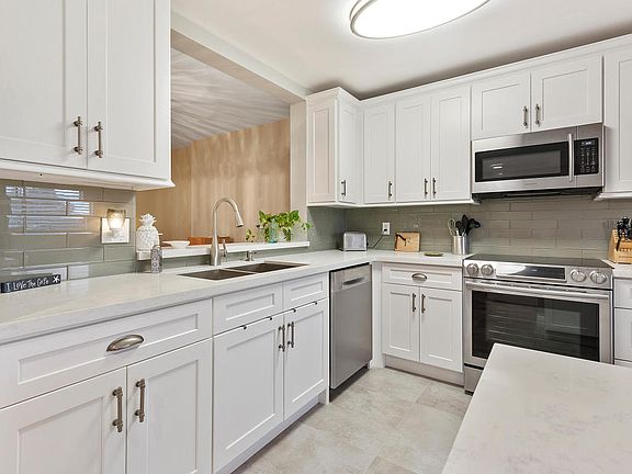 Over $75K spent on renovations! Brand New A/C. Beautiful upgraded kitchen with quartz countertops, custom shaker style cabinets, and top of the line stainless steel appliances and a charming breakfast nook. Porcelain tile flooring throughout. Large master bedroom with walk-in closet. Fabulous screened in patio with lake view. This unit is a must see!