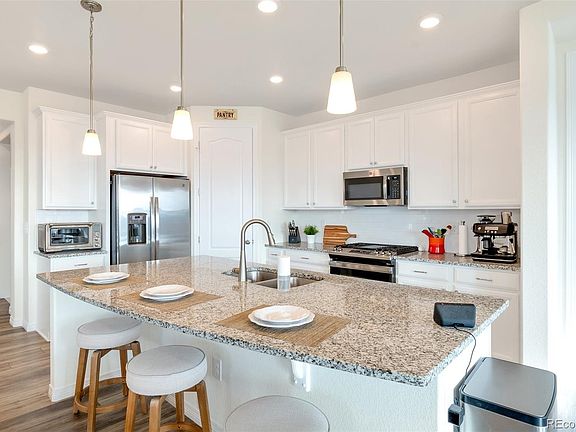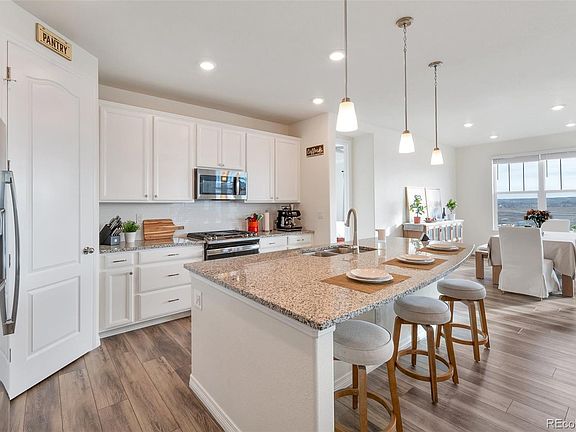 Nestled in a the Sierra Ridge community in Parker, this ranch-style home with a walk out basement offers contemporary living and a beautiful view. Featuring an open-concept design, the spacious living and kitchen areas are flooded with natural light, thanks to large windows that frame stunning panoramic views of the surrounding landscape. Whether you're enjoying a quiet morning coffee or entertaining guests, you'll appreciate the seamless flow between the living space and the outdoor vistas.