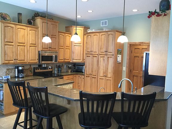 Rambler with finished basement. 2 bedrooms on main floor. Ground source heat pump. Gas fireplace. In-floor heat throughout. 3 Stall garage. Fenced in back yard. Deck and patio.