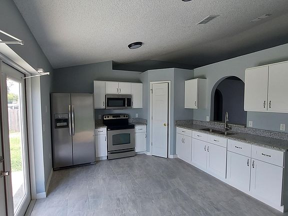 Freshly remodeled home in great area of Deltona. Large fenced yard. Close to Shopping. Vaulted ceilings, split plan, walk in closet, porcelain tile trough out and new paint inside and out. Grab this under market rent now, Similar less newly done homes are renting in the same neighborhood for $200 more a month. Call for showing availability.