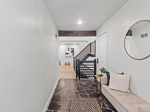 Enjoy the open concept of this beautiful mid-century modern home. The original slate tile nods to the home's era, while the new flooring throughout brings a fresh and cohesive feel. The fully renovated kitchen is a showstopper, featuring quartz countertops, new cabinetry, and stainless steel appliances. All bedrooms and laundry are on one level, completely updated and ready for the new owner to enjoy. Brand new roof installed July of 2025