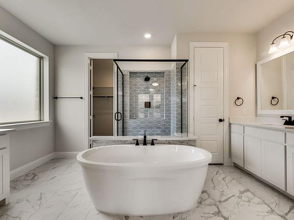 This spacious 6 bedroom home is east facing and on a corner. The open concept kitchen has an island, Shaker cabinets, Omegastone slab countertops, a full bowl sink, stainless steel appliances, double ovens, 5 burner gas cooktop, & a large walk in pantry. The Vaulted family room has a gas fireplace. Downstairs Guest Suite or Home Office. 3 Downstairs bedrooms & 3 upstairs bedrooms. Large covered back patio. Custom features include lots of wood patterned tile floors in family room, kitchen, dining, primary suite & gameroom. 8 foot doors, full oak staircase w wrought iron railing, free standing tub in Primary Bath, glass shower w deco tile, rectangle sinks, flat screen tv wiring. Energy Star Partner w R38 & tankless water heater.