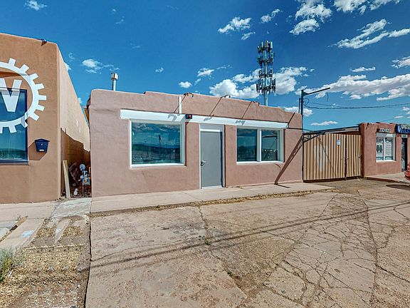 Parking is readily available directly in front of the retail section, with extra parking spaces becoming available upon opening the gate. When the gate is closed, it creates a tranquil retreat from Cerrillos Road and opens up to a charming backyard space. The retail area is adaptable, ideal for use as a studio or for various artistic and commercial projects.