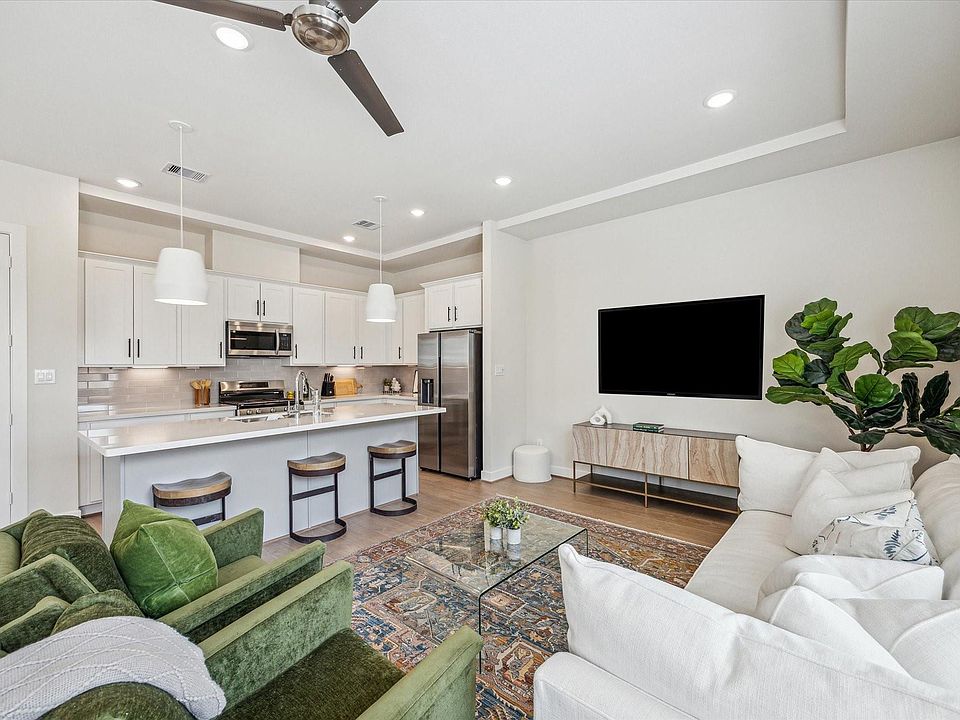 Stainless-steel appliancesPrivate fenced yardWide-plank swiss flooringQuartz countertopsTray ceilingsDual vanitiesShaker cabinetry