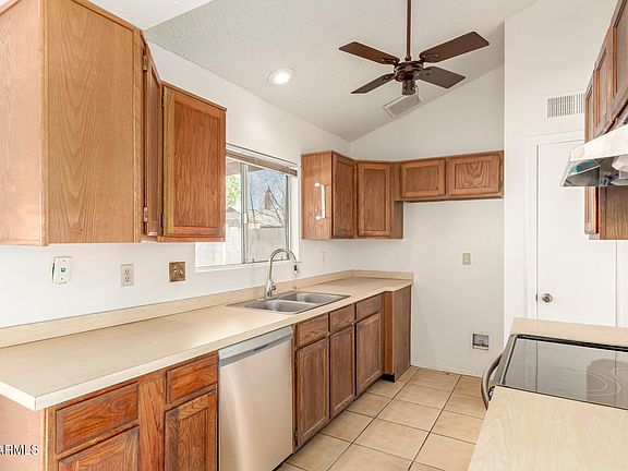 Fantastic opportunity to own this single-level home on a prime and spacious corner lot! New exterior and interior paint throughout. A low-care front yard, 2-car garage, and two RV gates (front & side) are just the beginning. The inviting interior showcases vaulted ceilings, abundant natural light, a neutral palette, and tile flooring throughout. You'll love the seamlessly flowing open layout, perfect for everyday living & entertaining! The kitchen includes new SS electric range/hood & dishwasher, a pantry, and ample cabinetry & counter space. Featuring 2 beds & 1 newly updated bathroom, this gem is great for anyone looking for starter home in a desirable location or an investment opportunity. Check out the large backyard, offering a full-length covered patio! With your creative ideas, you can make it a complete outdoor oasis. Close to ASU, shopping, dining, parks, & freeways.