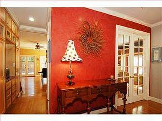 Remarkable 4 Bedroom, 3 Bath, gated home with large Living Room, Formal Dining, separate Family Room is attached to a stunning Kitchen with LaCanche. 6-burner, 3 oven stove imported from France, Vetrazzo countertops and 50 cubic feet refrigerator from England. The extremely large Master Bedroom has vaulted ceilings, walk-in closet, built-ins, gas fireplace and Grand Master Bath. The backyard includes a sport court, gas fire pit and pizza oven.