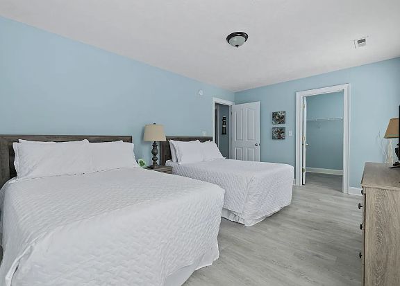 Bedroom four is perfect for the rest of the family and has two queen beds.