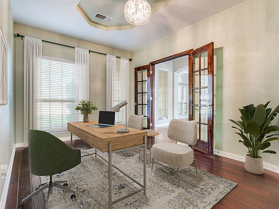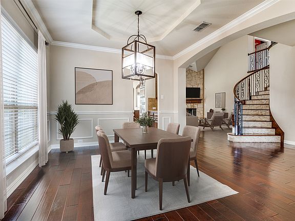 This stunning home in the highly desired Wolf Creek Estates truly has it all! From the moment you pull up, the beautiful curb appeal and grand front exterior make a great first impression. Located on a cul-de-sac! Step inside and you’re welcomed by soaring ceilings and a dramatic spiral staircase. Walking in, there’s a spacious office with French doors—perfect for working from home or creating a quiet space. The formal living and dining rooms are ideal for entertaining friends and family. The heart of the home is the expansive family room with dramatic ceilings and a stunning stone fireplace nestled in the corner—perfect for cozy evenings and entertaining guests. Abundant natural light floods the space, creating a warm and inviting atmosphere. The kitchen overlooks the family room and features granite countertops, large island, walk-in pantry, and tons of cabinet space—including a butler’s pantry! More kitchen features include double-oven, gas cooktop and pot filler. There’s also a sunny breakfast nook where you’ll love starting your day. The primary suite is on the main floor and offers a peaceful retreat at the end of the day. The spacious primary bath features dual vanities, separate shower, jetted garden tub and walk-in closet. Upstairs, you'll find a large bonus room, a dedicated media room, and four spacious bedrooms—all with walk-in closets. Two additional full bathrooms ensure comfort and convenience for everyone. One of the upstairs bedrooms even enjoys access to a charming front-facing covered balcony. Enjoy the spacious backyard with covered back patio for those Texas BBQ gatherings. This is your opportunity to own a dream home in one of the area's premier communities!