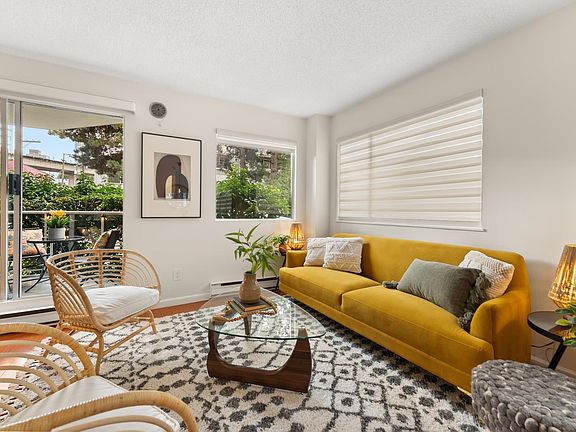 Beautifully updated 2 bedroom, 2 bath home with an expansive primary suite and ensuite, drenched in natural light from east, west and south exposures. The open concept living, dining and kitchen flow to a sunny deck, perfect for morning coffee or an evening glass of wine. New additions: freshly painted with new appliances, window coverings, and laundry. With such generous square footage, there is room for two work from home opportunities. Steps to Granville Island, the Seawall, Prado Cafe, Les Amis du Fromage, and the design district - a walkable, European-style lifestyle by the water. First Showings: Tuesday October 21st 10 :30-12:00 and 5:00-6:30, Thursday October 23rd 12:00-2:00, Sunday October 26th 2:00-4:00pm.