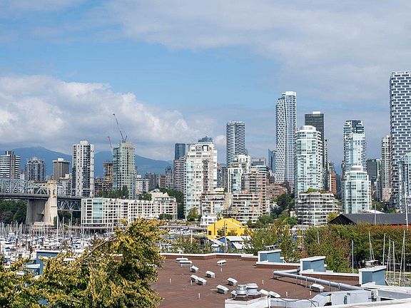 Perched on the 6th floor in the premier position of Mariner Point, this 2-bedroom, 2-bath 1,346 sq.ft. corner suite offers the very best views and outlook in the entire complex. From your private balcony and enclosed sunroom, take in sweeping vistas of the city, mountains, and water. The interior of the suite is well laid out with 2 bedrooms and 2 bathrooms. Living and dining rooms connect to the kitchen. The enclosed sunroom (with permits) is 268 sq.ft. in addition to the 1,078 sq.ft. of interior living space. Strata plan (1,075 sq.ft.) In-suite storage/laundry. Building has been well maintained. Sought-after community welcomes pets and rentals. City of Vancouver pre-paid lease can be extended 20 years to 2066. Parking. Steps to the Seawall, Granville Island. Some photos digitally staged