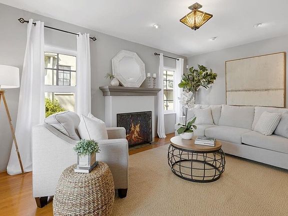 Offers due Sunday 9/19 by 7:00pm: Striking 2 Bedroom+Office Craftsman style Bungalow on a tree lined avenue welcomes your family with two mature redwood trees, a carefully manicured front yard, and large, shingle-clad bay windows. A slate front porch leading to the solid wood entrance door lend both gravity and texture to this architectural gem. Light pouring through the sit-in bay window illuminates the living room with decorative fireplace flowing seamlessly to the dining room accented by matching sconces and chandelier. The traditional hardwood flooring throughout provides an aesthetic cohesion exuding warmth and character. The large kitchen offers ample counter space, cabinetry, a breakfast nook, and a second sit-in bay window with additional storage. Lush green floods the eye as you step onto the back patio looking over 1,000 square feet of grass surrounded by flowers and citrus trees. This large lot includes a two-car garage with vehicle charging & storage attic, a driveway for three additional cars.