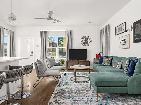 This home is a stunning, income-producing modern property in the heart of Nashville—offering a rare blend of luxury, design, and location. This three-level, four-bedroom, four-bathroom home with a large bonus room was built for both comfort and entertainment, featuring a bold, music-inspired interior and an open-concept layout perfect for hosting or relaxing. The chef’s kitchen includes stainless steel appliances, quartz countertops, and custom cabinetry, opening to a spacious living and dining area ideal for gatherings. Upstairs, the primary suite boasts a walk-in closet and spa-style bath, while the massive third-floor bonus room offers four queen beds and lounge space—perfect for guests or short-term rentals. With high-speed fiber internet, a 65” 4K Smart TV, in-home laundry, and free parking, every detail is turnkey and professionally designed. Located just minutes from Broadway, Vanderbilt University, and Nashville’s top attractions, this property delivers exceptional value as a high-performing STR.