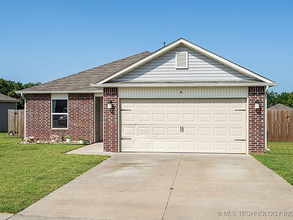 This east Broken Arrow, one-owner home has been exceptionally maintained and is ready for it's new owners! BRAND NEW CARPET IN ALL BEDROOMS! Built in 2019, this 3 bedroom 2 bathroom home offers an efficient open floor plan with beautiful finishes throughout. The spacious master bedroom includes a private bathroom and walk-in closet. Enjoy easy-to-clean luxury vinyl flooring in the common spaces, and cozy carpet in the bedrooms. The hall bath is thoughtfully located directly across from the 2 additional bedrooms. Sellers have installed a privacy fence and a storm cellar. This home is conveniently located within minutes of the Broken Arrow Expressway, QuikTrip, and more. Broken Arrow schools with Wagoner County taxes! Brand new garage door installed Nov 2024 with 5 year transferable warranty!