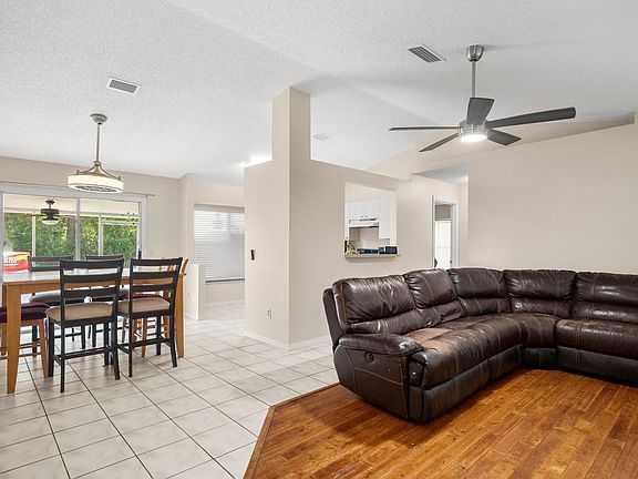 This home offers not just one but two master bedrooms to choose from. Looking for an In-Law Suite or income producing options with a private room which includes a spacious bathroom, separate A/C and Water Heater, mini kitchen area with a small refrigerator and this own private entrance. THIS IS A MUST SEE. Roof recently installed in 2022, New A/C unit for the main house installed in January 2023, newer Stainless Steel Kitchen Appliances, recently installed gutters, recently installed insulation and newer water heater. This corner lot offers a spacious backyard with a tiled and screened in patio with plenty of room for a pool. Located just minutes from highly sought after Tradition and Gatlin areas, nearby restaurants and shopping, close to both I95 and the Turnpike.