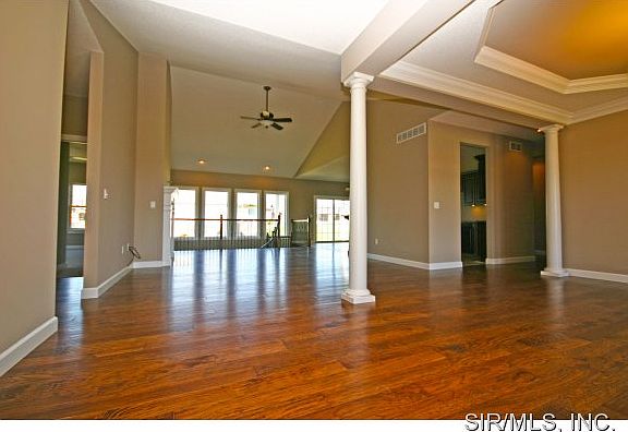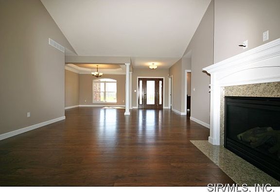 This beautiful custom built 3/4 brick home has everything you are looking for! This home is located in Country Crossings Subdivision. It offers 4 Bedrooms, 4 Bathrooms, an office/study and a 3 car garage. The basement is fully finished including a bar area, 3/4 bath, spare bedroom and theater area. The family room boasts vaulted ceilings, a gas fireplace and hardwood floors that flow into the foyer, study and dining room. The dining room is where you will find an arched doorway and 12 foot ceilings. The kitchen has been beautifully finished with custom made Amish hickory cabinets, granite counter tops, ceramic tile floors and stainless steel appliances. You will be amazed by the master bathroom that has a double vanity, Amish cabinets, cultured marble vanity tops and a tile shower and tub surround. This home has an open floor plan that makes it perfect for entertaining.