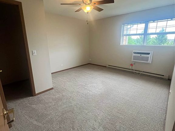 Beautifully updated, spacious & airy 2 Bedroom unit featuring vaulted ceilings, ceramic tile, lots of storage space. Newer A/C, kitchen appliances, in-unit washer/dryer, water heater, lighting, ceiling fans, blinds & more! Large open kitchen w/ peninsula breakfast bar, lots of cabinets. Outdoor closet for additional storage. This great unit also comes with its own parking space! Conveniently located near Metra, shopping, dining & entertainment! Tenant pays electric (required) & cable/internet (optional). Must have good credit & provide pay stubs/offer letter/income documentation & references. No Smoking.