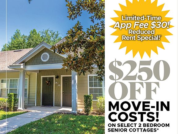 - Special offer! $250 OFF Move-In Costs on Select 2 Bedroom Senior Cottages* For a Limited Time, App Fee is only $30! 11/14/25. Income restrictions apply, contact leasing office for details.