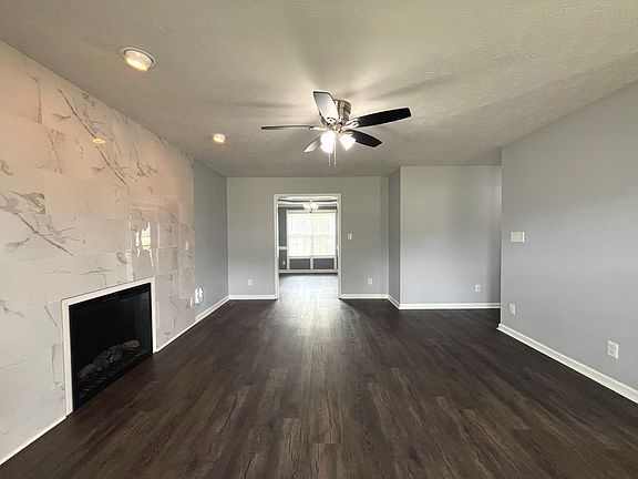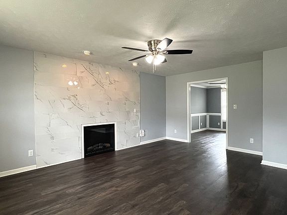 Custom accent wallTrey ceilingsGorgeous kitchenGranite countertopsScreened back patioFormal dining roomModern backsplash