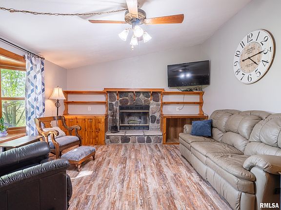 Check out this gorgeous ranch style house that's tucked away in rural Green Valley that sits on just a little over 2 acres. The backyard pasture and beautiful sunsets make this place a peaceful paradise. While you're sitting enjoying the beautiful view, you can enjoy; the fenced in chicken coop, the multiple varieties of fruit trees, the large pasture, and all the wildlife that comes with this property You'll fall in love with the porch and it's welcoming and aesthetically pleasing patio area, which would make the perfect spot while you take in all the nature. Walking in you'll see the warm and inviting fireplace in the living room, and then you'll be greeted by the kitchen with authentic knotty pine cabinets. There are 3 bedrooms that include a master suite, and 2 full bathrooms. The unfinished basement is full of potential and currently plumbed in for a third bathroom. This house is just calling out for a family, a couple, or an individual that wants the conveniences of Pekin living, but the country feel. Not to mention all of the great updates that was done: new roof (2022), gutters/gutter guards (2022), front sidewalk (2022), back patio (2022), new septic system (2022), exterior stain and interior painting (2022), duct cleaning (2022), master bath floor/fixtures (2022), and driveway millings (2022), this property is ready for you to enjoy this house as much as the previous owners have. ***Sellers retain the kitchen curtains and the mirror in the playroom*** Selling as-is