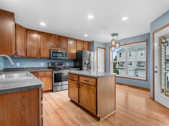 Come see this stunning townhome. It features 3 bedrooms, 3 bathrooms, and a 2-car attached garage. The private primary suite and two additional bedrooms are conveniently located on one level. The main floor offers an inviting open-concept layout with a bright living area, kitchen, balcony, and laundry room. The lower level includes a inviting family room—perfect for relaxing or entertaining. Enjoy all the wonderful community amenities, including a park, playground, fitness center, party room, clubhouse, swimming pool, splash pad, and walking trails. Located close to I-35E for a smooth commute.