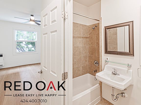 Lovely Bachelor with Tons of Natural Light, Included Minifridge & Microwave, Utilities Included, and On-Site Laundry ~ In Vibrant Hollywood! Unique Features: Naturally Lit: Enjoy a large sunny window that floods the living space with natural light. Enhanced Privacy: Blinds on the windows let you control the light and offer additional privacy. In-Unit Storage: Stay organized with a convenient hallway closet. Temperature Control: An efficient gas furnace and breezy ceiling fan will ensure that your home is always comfortable. For Your Convenience: A minifridge and microwave are included. Refreshing Bathroom: Enjoy a well-lit mirror, pedestal sink, and soaking tub with shower option. Hassle-Free Utilities: Enjoy the peace of mind that comes from having all of your utilities included in your rent price. Easy On-Site Laundry: Adding convenience to your everyday chores. Fabulous Location: Live in the heart of entertainment with world-class dining, iconic landmarks, and vibrant nightlife. Convenient access to studios, theaters, and public transit makes Hollywood a dynamic and exciting place to call home. Experience the energy of the city every day. Don't miss out on the opportunity! Available for an immediate move-in. LEASE TERMS: 1 Year Lease Pictures and descriptions are of a Model Unit Floor Plan and Details may vary Square Footage is approximate. Street Parking only. Showings may not be 1-on-1. Listed pricing and special offers are only valid for new residents. Pricing and availability are subject to change at any time. Red Oak does not warrant or represent that image renderings on this website are an accurate representation of every floor plan available at the Property. Floor plans may vary unit by unit and by location at the Property. Please contact the Leasing Office to schedule a tour of the Property and the particular unit you are interested in. Pricing and availability are subject to change at any time.