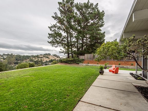 Unique opportunity to own TWO LOTS within the Highlands Eichler community! A beautifully remodeled atrium model home incorporates a modern-contemporary style while maintaining the essence of mid-century living. The indoors blend with the outdoors presenting magnificent Bay views and countless opportunities to witness wildlife. The second lot extends 19,200 sq. ft. down hill preserving land and delighting viewers. This light filled home has hardwood floors throughout, tile and cement accents, stainless steel appliances, spa inspired master bathroom with walk-in closet, freshly painted bedrooms and hallway. Recently landscaped with drought tolerant elements. Foam roof recoated three years ago. Prime location with easy access to highways 280 and 92, San Francisco Airport, biking trails; walking distance to Highlands school, Highlands Rec. Center, restaurants, and shopping area. Experience California living at its best!