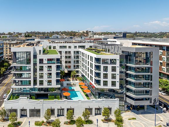 - Exterior features: Balcony, Bicycle storage, Business Center, Clubroom, Complimentary Wi-Fi Throughout Amenity Areas, Courtyard, Deep Soaking Bathtubs *Select Units Only, Direct street access *Select Units Only, EV Charging, Google Nest Thermostats, Light and Dark Designer Finish Packages, Limited penthouse and urban lofts available, Modern, chef-inspired kitchens, On-Site Maintenance, Package Receiving, Pet Washing Station, Quartz countertops, Roller Shades, Rooftop Deck, Spacious closets, Studio, 1-, 2- and 3-bedroom floorplans, Under Cabinet Lighting, Urban mudrooms *Select Units Only, View Type: Panoramic Views of Downtown and Coronado Bridge, Wood-style plank flooring