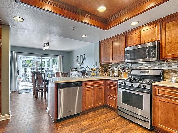 Beautiful View Home in the popular Sierra Del Oro community of Bella Vista. Move-in ready and tastefully remodeled, a designer touch is evident throughout. Glistening wood flooring, newer carpeting, designer paint, plantation shutters, quality light fixtures, ceiling fans and so much more! The nicely upgraded kitchen features stainless appliances, granite counters, rich cabinetry and custom lighting. Open floor plan with vaulted ceilings includes two master bedrooms upstairs as well as a downstairs bedroom and bathroom with walk-in shower. This is a rare end-unit with a private front entry set back from the street and siding to a pretty greenbelt. Full sized sliders from both the living room and dining area lead out to a pretty patio with open views. A double wide alumawood patio cover complete with LED lighting provides nice shade and ambiance. Minutes from Orange County, Sierra Del Oro residents enjoy close proximity to the 91 and 71 fwys, toll roads and Metro station. Easy walk to Serfas Club Park and shopping center.