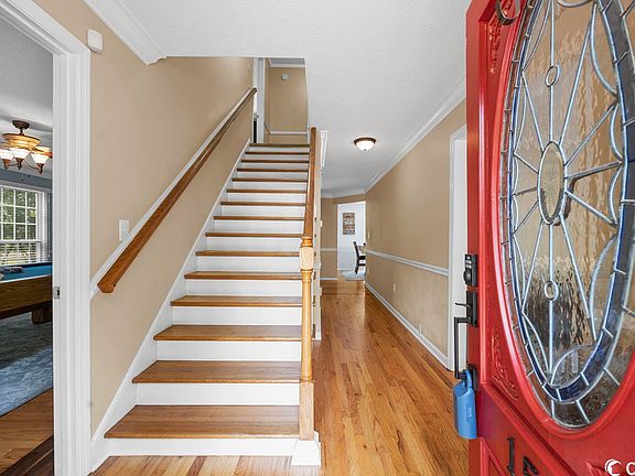 Welcome home to a beautiful Surfside Beach property. This rare opportunity to own a large home in the sought after Deerfield community located in the heart of Surfside Beach. This gorgeous 5 bedroom, 4bath home is situated at the end of a quiet cul-de-sac. This house has recently redone hardwood and ceramic tile floors, crown molding throughout, and so much more! Take a look in the main family room and see the beautiful and unique masonry fireplace and beautifully crafted coffered ceiling with expose beam. Formal dining room and a brick style carolina room on the main level are also a plus! If you like to entertain guests, this house gives you everything you need to do so with a large backyard deck that is connected to a graciously sized screened porch, all overlooking your fully fenced-in backyard oasis. Backyard includes a large, covered outdoor kitchen/bar, a cozy brick fire pit area, as well as a huge salt water pool to cool off and soak up the sun throughout the year! Plenty of space on this .35 acre lot! If you need a lot of storage, this house will not disappoint. Not to mention, this home also has a two car garage that can easily store all your toys! Above the garage is a bonus room that contains a living area, bedroom, and a full bath that could be used as a mother in-law suite! This house offers so much, you have to see it to truly appreciate it. This neighborhood is centrally located to all Surfside has to offer and still being just a short golf cart ride to the beach. In a calm neighborhood, with close by access to major highways, the location couldn't be better! Come check out this amazing home today!
