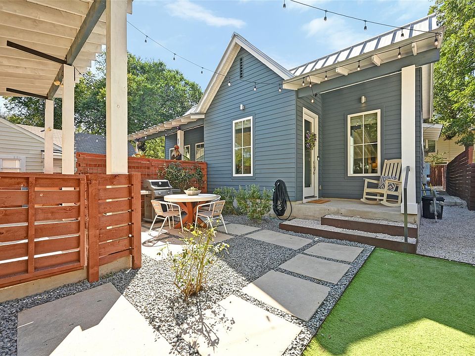 Welcome to Unit B of this thoughtfully designed A & B Condo, built in 2012 by local builder Magpie Group. Nestled in the heart of Zilker, this bungalow-style home blends modern convenience with Austin’s signature charm — all within walking distance to South Lamar’s top restaurants, coffee shops, and Zilker Park. Step inside to an open-concept living area featuring recessed lighting, clean lines, and a natural flow from the kitchen to the living and dining spaces — perfect for everyday living or entertaining. The Primary Bedroom is conveniently located on the main level, offering privacy and ease, while additional spaces upstairs provide flexibility for guests, work, or hobbies. Enjoy Austin’s year-round outdoor lifestyle with both front and back patios, plus a screened-in back porch ideal for morning coffee or evening relaxation. The fully gated yard with low-maintenance turf creates a private oasis in the middle of the city. Highlights: • Built in 2012 by Magpie Group • Bungalow-style design with quality local craftsmanship • Open-concept floor plan with recessed lighting • Primary Bedroom downstairs • Dedicated office • Screened-in back porch + front and back patios • Fully gated with artificial turf for easy maintenance • Prime Central Austin location — walk to Zilker Park, Barton Springs, South Lamar eateries, and more. Experience the best of Central Austin living in this inviting Zilker retreat — modern comfort, unbeatable walkability, and that timeless Austin vibe.