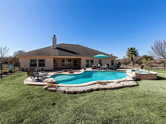 Beautiful 1 story custom home in the prestigious, gated community of Grand Mesa. Large great room has stone fireplace & wall of windows w/views of backyard/pool. Gorgeous updated kitchen has breakfast bar & walk in pantry. Spacious dining area adjacent kitchen. Huge game room/2nd living area with french doors leading to backyard~perfect for entertaining. Spacious study off entry. Lovely master suite w/trayed ceiling~Large bath w/dual vanities & huge closet. Acreage extends beyond fence line!