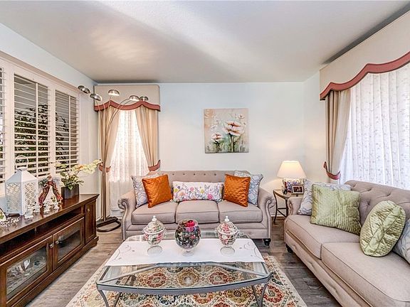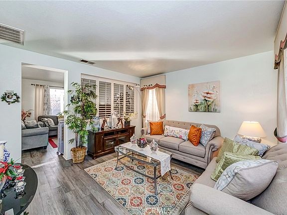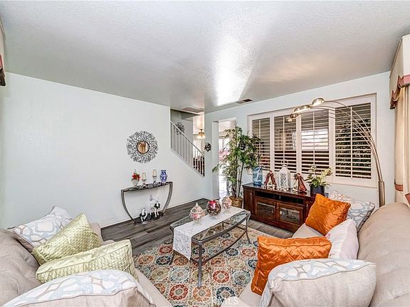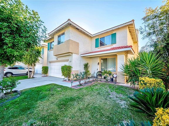 This move-in ready, upgraded Single Family Home is located in a desirable gated community built in 1997. This home features 5 bedrooms, 2.5 baths, approx. 2,024 sq. ft. of living space on 4,692 sq. ft. of private land. It boasts many windows that allow plenty of natural lighting throughout. Terrific floor plan with formal living room. Upgraded custom window treatments and laminated wooden flooring adorned this home. Enjoy cooking in its spacious kitchen adjacent to the dining area and family room with a romantic fireplace. The gourmet kitchen has upgraded white cabinets, granite countertops, and a center island. Upstairs offers 5 bedrooms with the master bedroom featuring a walk-in closet and a private bathroom. Double vanity, soaking tub, and a water room complete the master bathroom. The spacious backyard with concrete slab, covered patio, & many fruit trees is a great space for light outdoor lounging and grilling. The laundry is inside and there is an attached 2-car bay garage with direct interior access. A water softening system has been installed in the home. The community offers sufficient guest parking & a park with a low HOA due of $129. Great curb appeal, close to schools, shopping, parks, and freeways.
